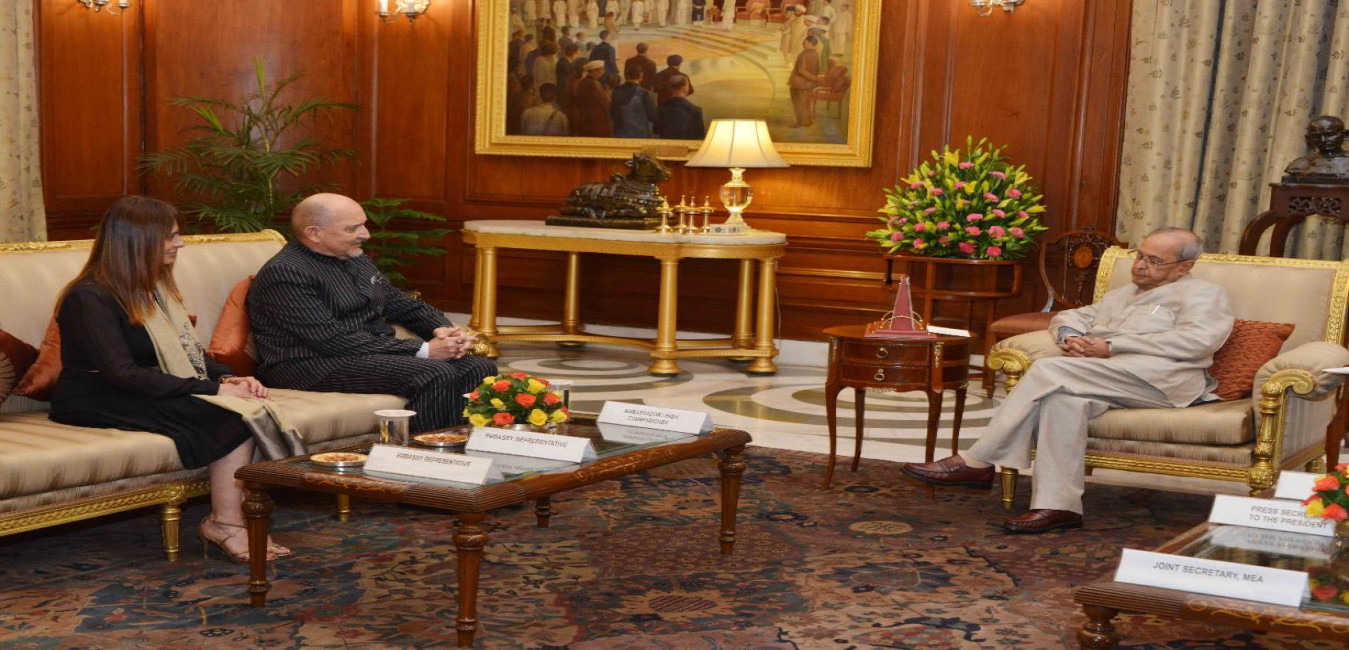 The High Commissioner of the Republic of Seychelles, His Excellency Mr. Philippe Le Gall presenting his credentials to the President of India, Shri Pranab Mukherjee, at Rashtrapati Bhavan on March 29, 2017.