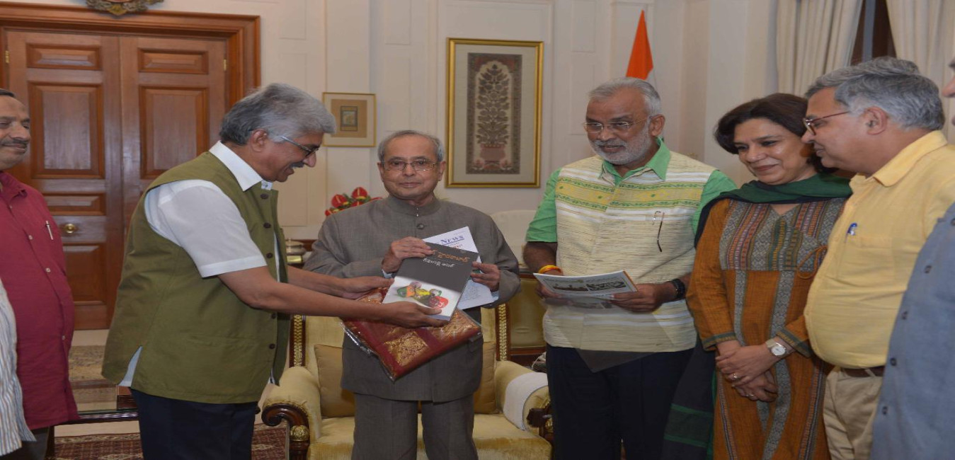 The President of India, Shri Pranab Mukherjee meeting with Shri S.N. Sinha, President with others from Indian Journalists Union, at Rashtrapati Bhavan on September 08, 2016.