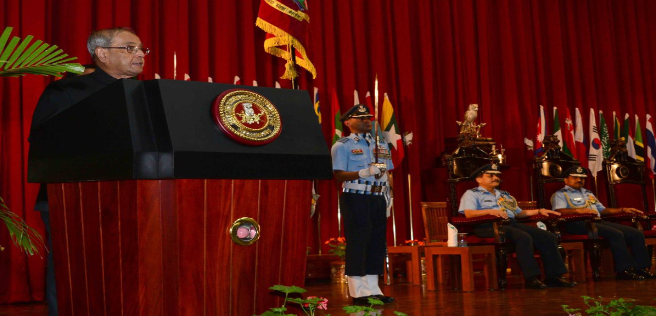The President of India, Shri Pranab Mukherjee addressing at the presentation of Presidential Colours to the Defence Services Staff College (DSSC) and visiting photo exhibition of DSSC, at Wellington, Nilgiris in Tamil Nadu on September 09, 2016.