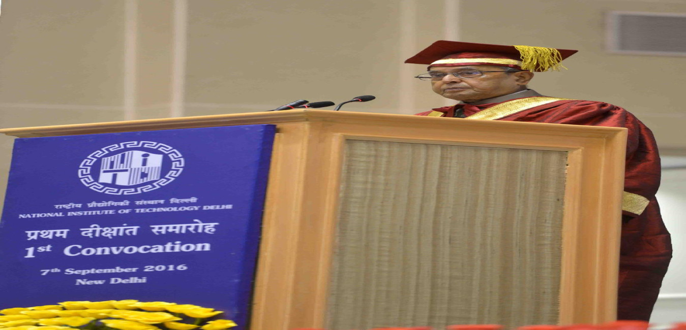 The President of India, Shri Pranab Mukherjee addressing the First Convocation of the National Institute of Technology (NIT), Delhi and presenting degree to the students, at Vigyan Bhavan, in New Delhi on September 07, 2016.