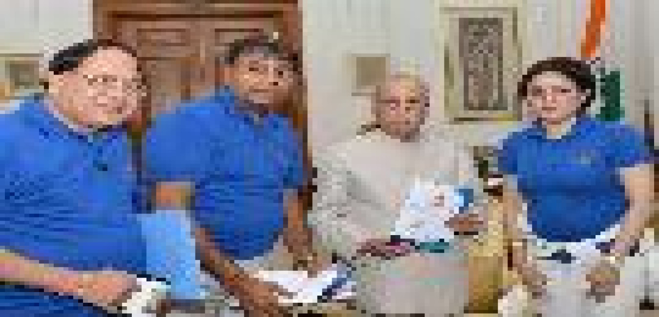 The President of India, Shri Pranab Mukherjee meeting with Shri Purna Ghosh, President along with Shri Manish Kumar Yadav and Shri Abhishek Kumar from West Bengal Congress Seva Dal, at Rashtrapati Bhavan on March 14, 2017.