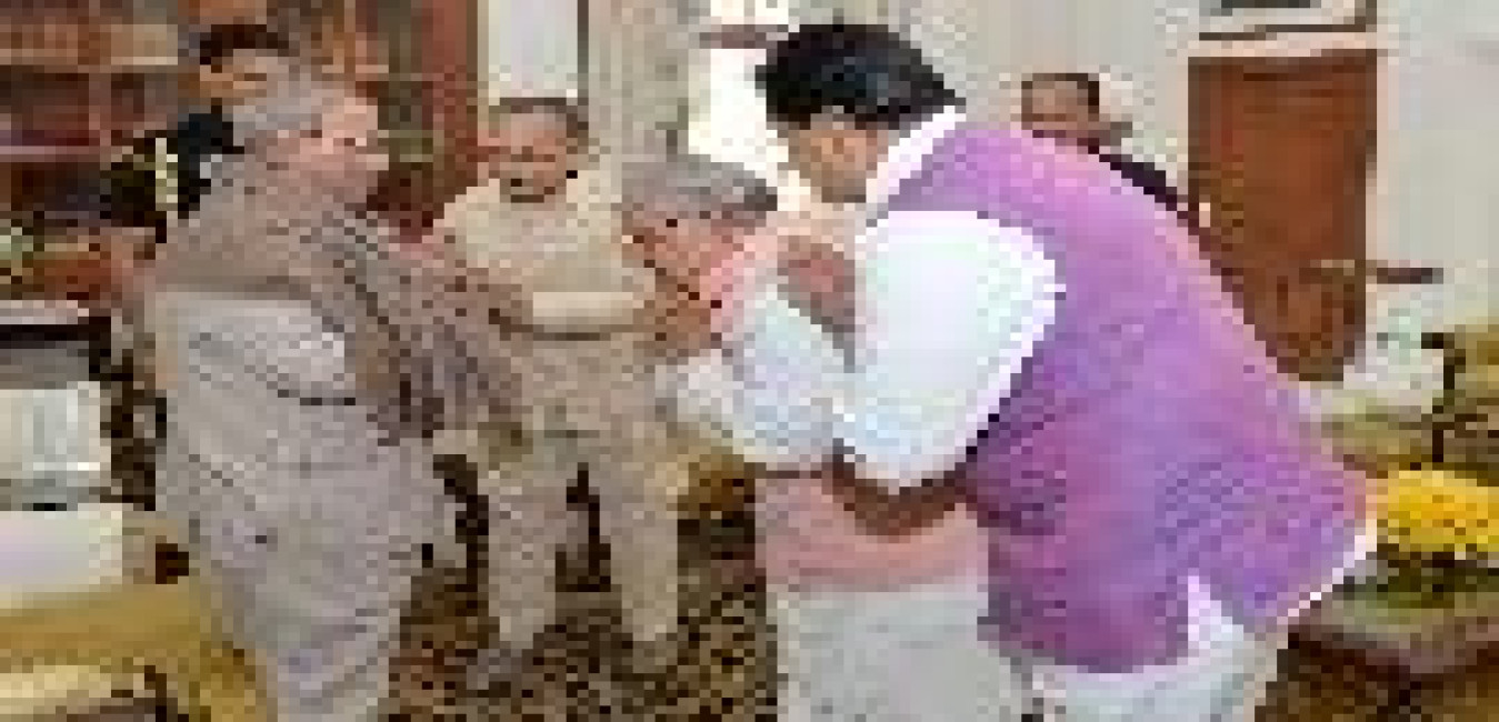 The President of India, Shri Pranab Mukherjee meeting with Dr. Jagannath Mishra, former Chief Minister of Bihar alongwith his family members, at Rashtrapati Bhavan on March 14, 2017.