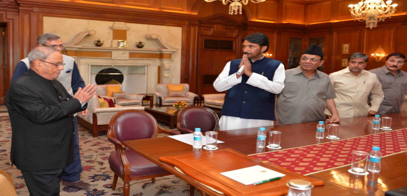 The President of India, Shri Pranab Mukherjee meeting with an all party delegation of MLAs from Jammu & Kashmir led by Shri Omar Abdullah, former Chief Minister of Jammu & Kashmir, at Rashtrapati Bhavan on August 20, 2016.