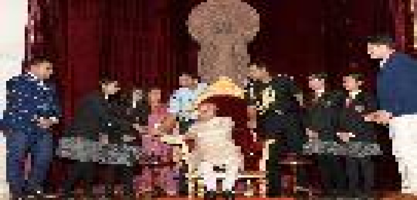 The President of India, Shri Pranab Mukherjee receiving Raksha Bandhan Greetings from the children/students from various schools/organizations at Rashtrapati Bhavan on August 18, 2016.