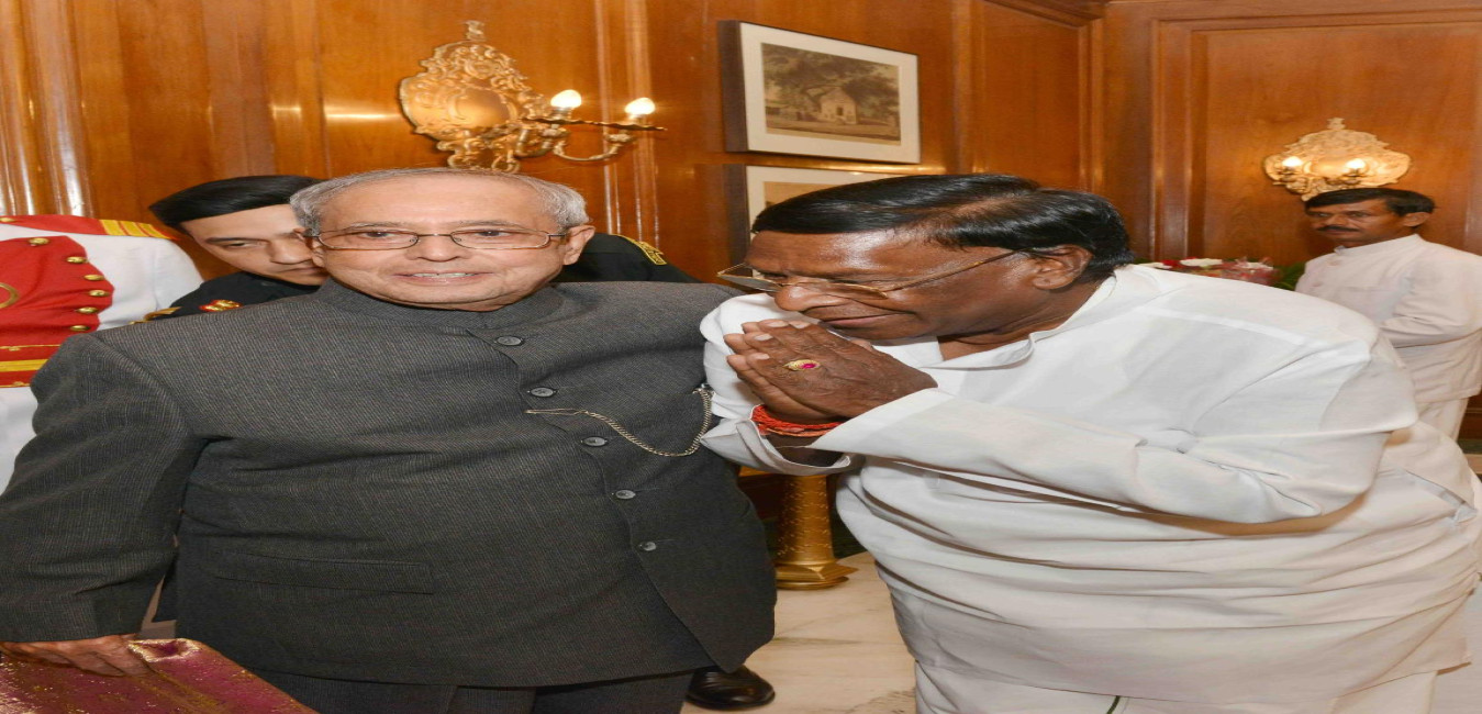 The President of India, Shri Pranab Mukherjee meeting with Shri V. Narayanasamy, Chief Minister of Puducherry alongwith his Council of Ministers, at Rashtrapati Bhavan on June 22, 2016.