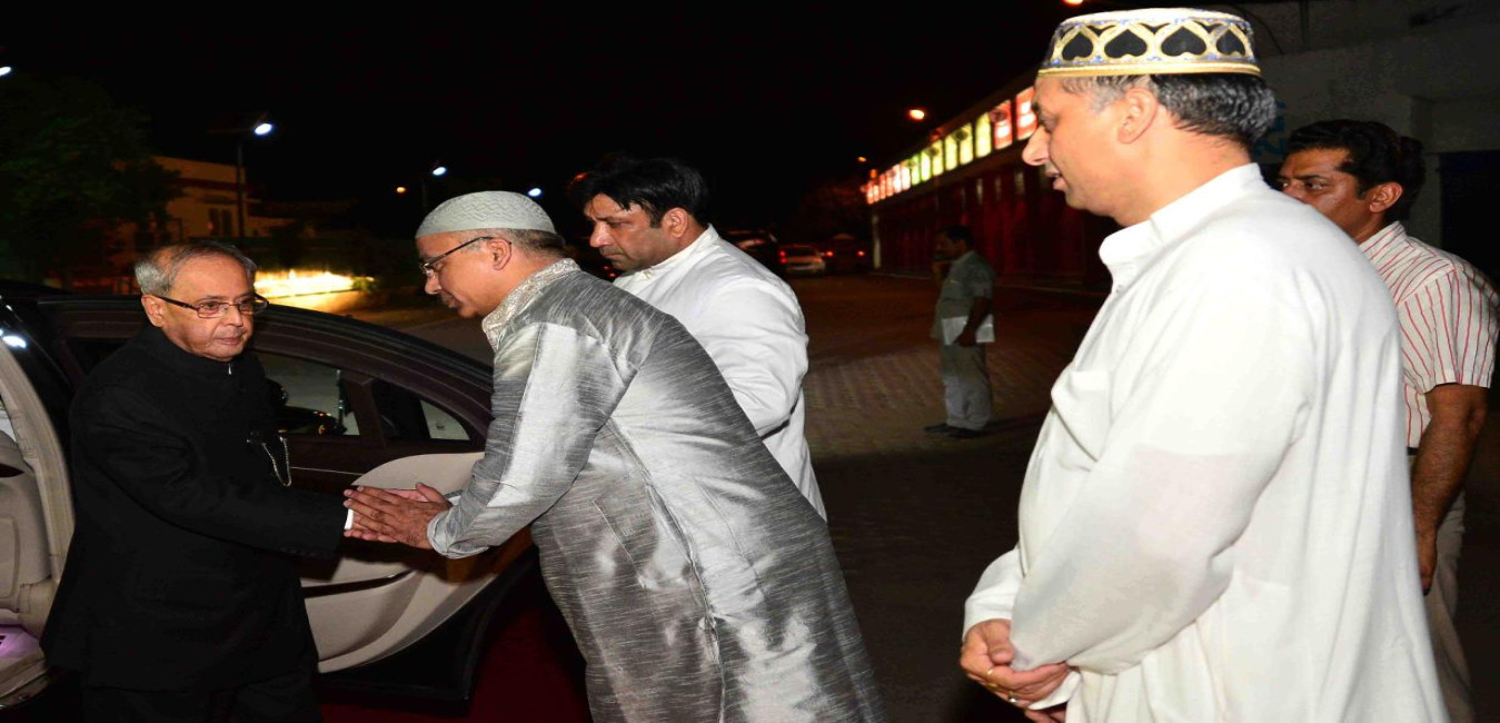The President of India, Shri Pranab Mukherjee visiting President's Estate Masjid on the occasion of 'Khatam Shareef', at Rashtrapati Bhavan Auditorium on June 25, 2016.
