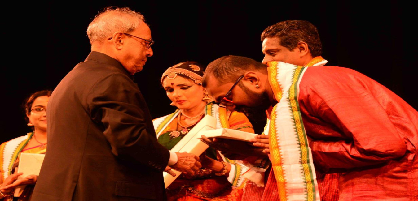 The President of India, Shri Pranab Mukherjee felicitating artists after witnessing a Bharatnatyam performance by Smt. Priyadarshini Govind, at Rashtrapati Bhavan Auditorium on June 25, 2016.