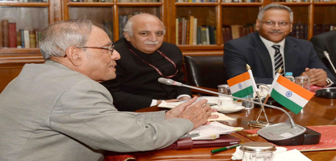 The President of India, Shri Pranab Mukherjee meeting with Prof. T. Ahmed, Vice Chancellor, Jamia Millia Islamia, at Rashtrapati Bhavan on June 27, 2016.