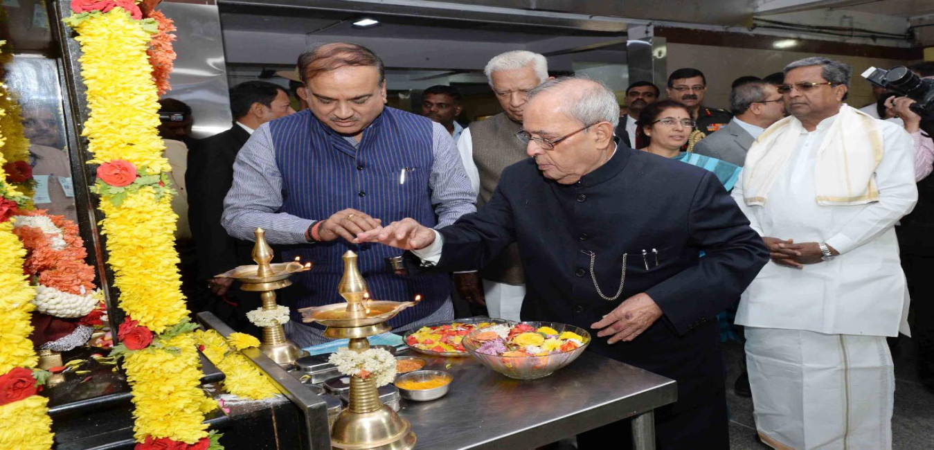 The President of India, Shri Pranab Mukherjee dedicating Sri Shankara Cancer Hospital And Research Centre to the Nation by unveiling the Plaque, at Bengaluru, in Karnataka on December 30, 2016.