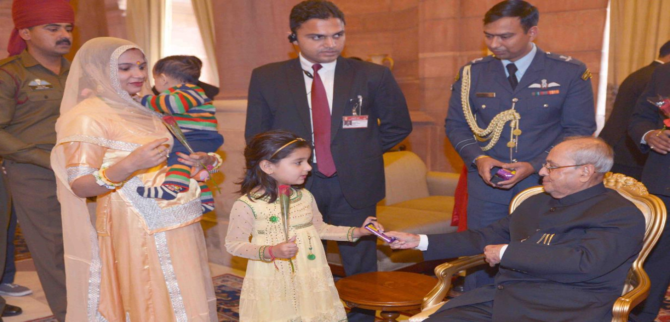 The President of India, Shri Pranab Mukherjee meeting with Shri Utpal Mukhopadhyay, Member, IKRDC, Kirnhar alongwith his family members, at Rashtrapati Nilayam, Bolarum, in Secunderabad on December 28, 2016.
