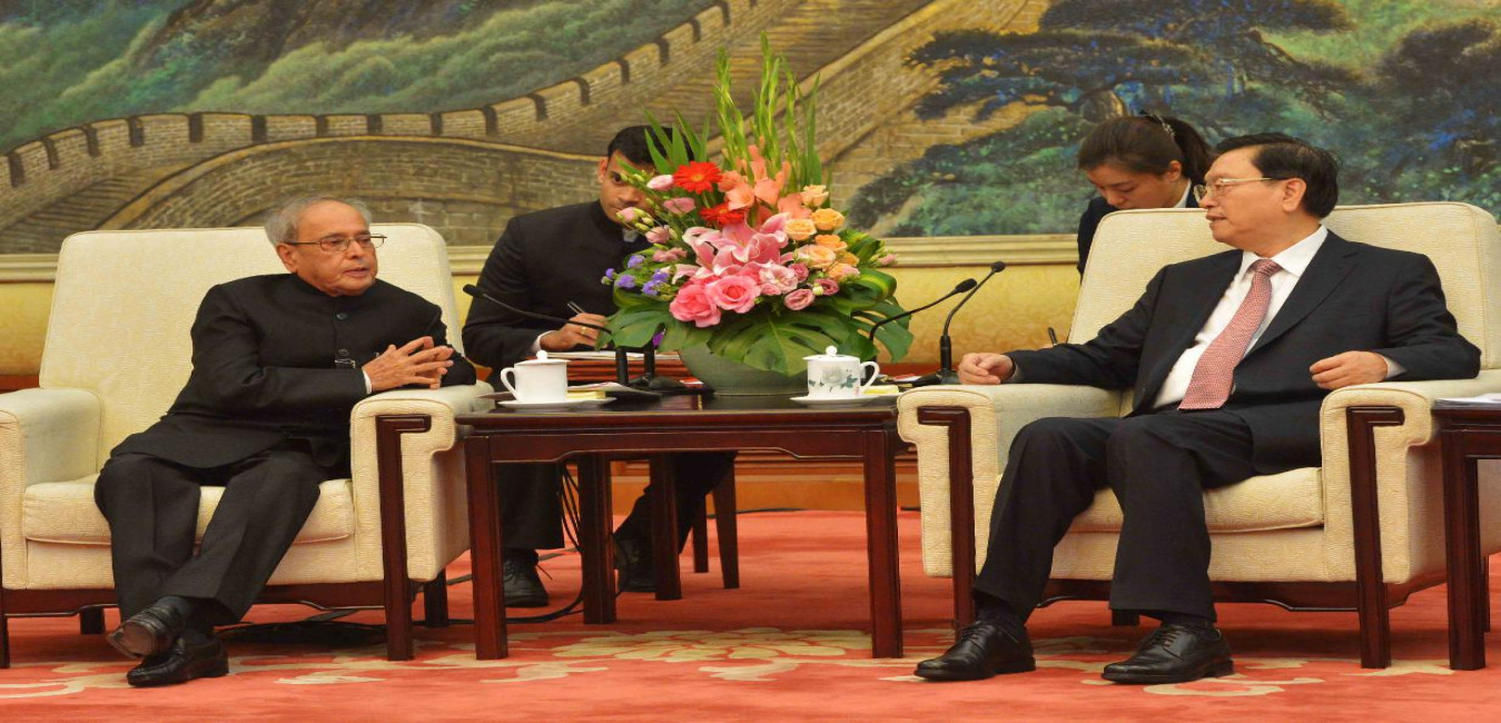 The Chairman of the National People's Congress, Mr. Zhang Dejiang calling on the President of India, Shri Pranab Mukherjee, at Great Hall of the People, in Beijing, The People s Republic of China on May 26, 2016.