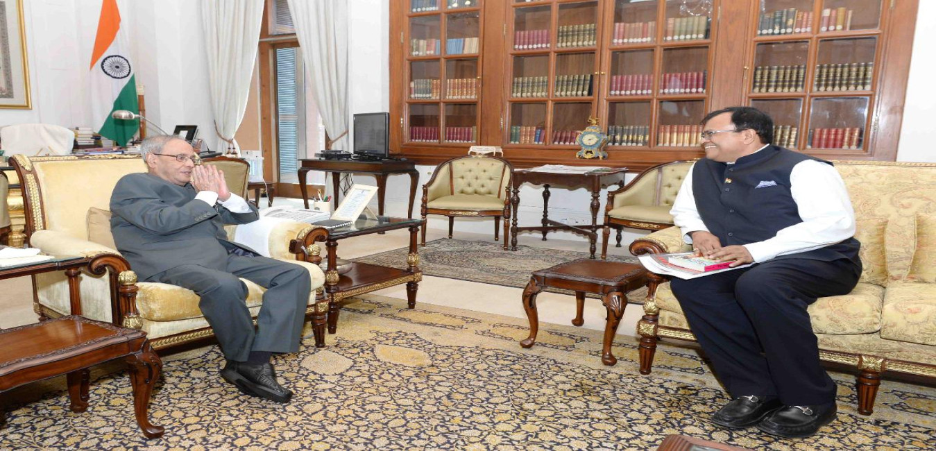 The President of India, Shri Pranab Mukherjee meeting with Prof. Kailash Acharya, Chairman, Media Department, Odisha Pradesh Congress Committee, at Rashtrapati Bhavan on May 20, 2016.