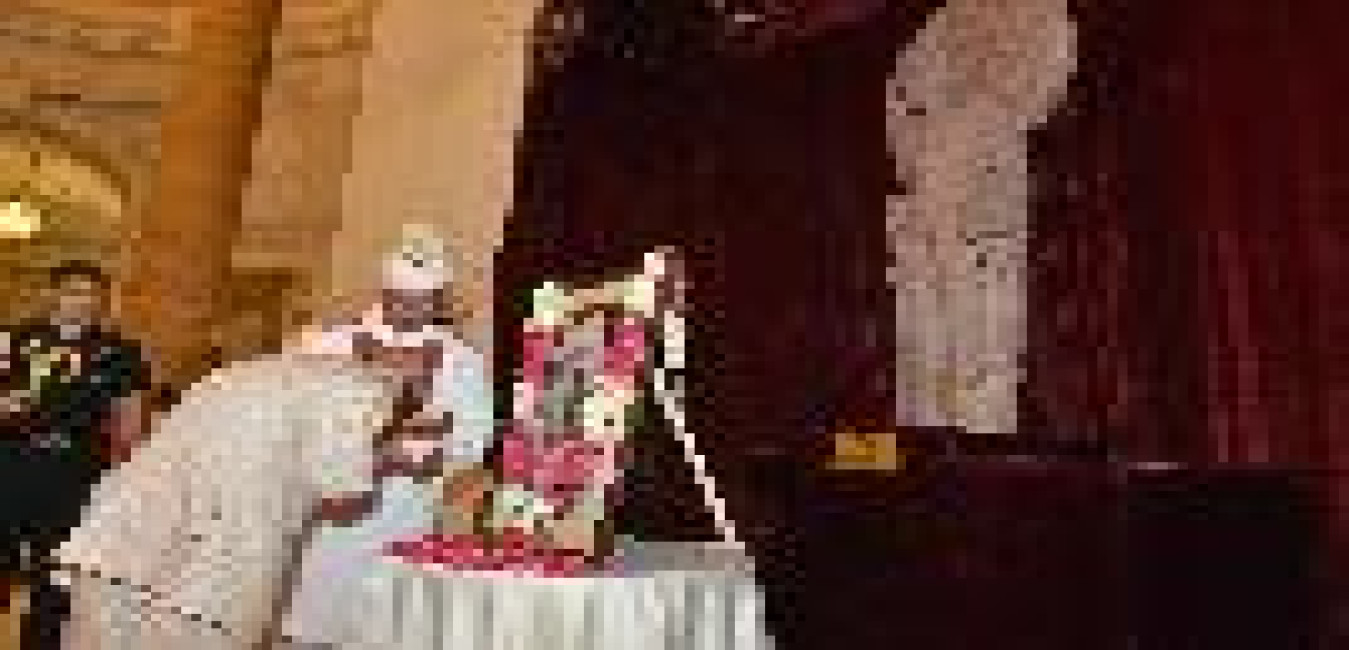 The President of India, Shri Pranab Mukherjee paying floral tributes at the portrait of Late Shri Fakhruddin Ali Ahmed, Former President of India on the occasion of his Birth Anniversary at Rashtrapati Bhavan on May 13, 2016. Family members of Late Shri Fakhruddin Ali Ahmed also attended the paying floral tribute ceremony.