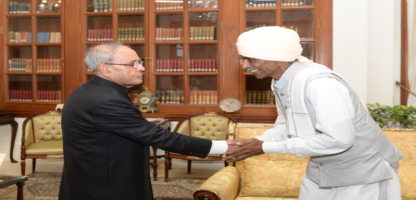 The President of India, Shri Pranab Mukherjee meeting with Shri Narayan Singh Amlabe, Ex-MP (LS) alongwith Shri Narender Singh Panwar, at Rashtrapati Bhavan on May 07, 2016.