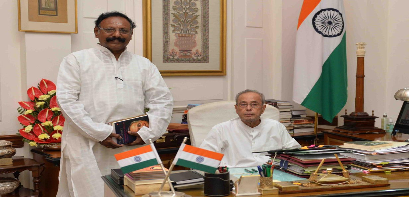 The President of India, Shri Pranab Mukherjee meeting with Shri Y.S. Chowdary, Minister of State for Science & Technology and Earth Sciences, at Rashtrapati Bhavan on April 13, 2016.