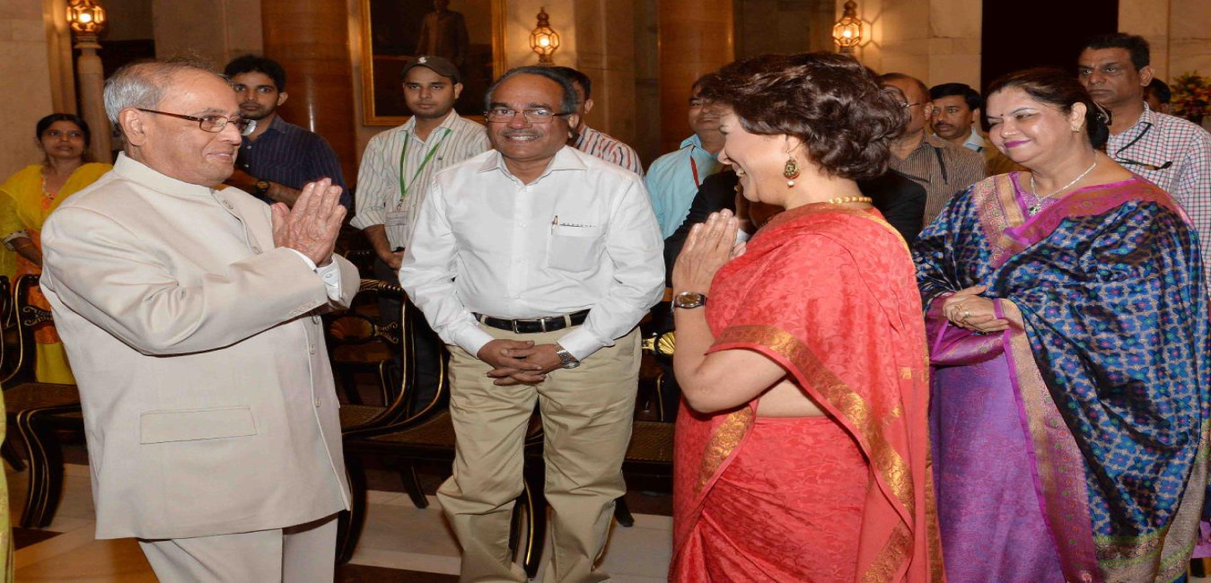 The President of India, Shri Pranab Mukherjee meeting with Dr. Naresh Kumar, at Rashtrapati Bhavan on October 28, 2016.