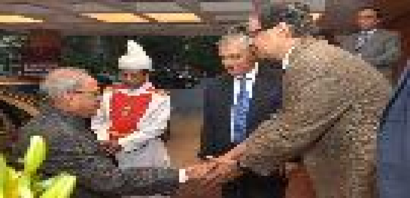 The President of India, Shri Pranab Mukherjee receiving a Pankha of Phool Waalon Ki Sair from Smt. Usha Kumar, General Secretary with other Committee members from Anjuman Sair-e-Gul Faroshan, at Rashtrapati Bhavan on October 21, 2016.