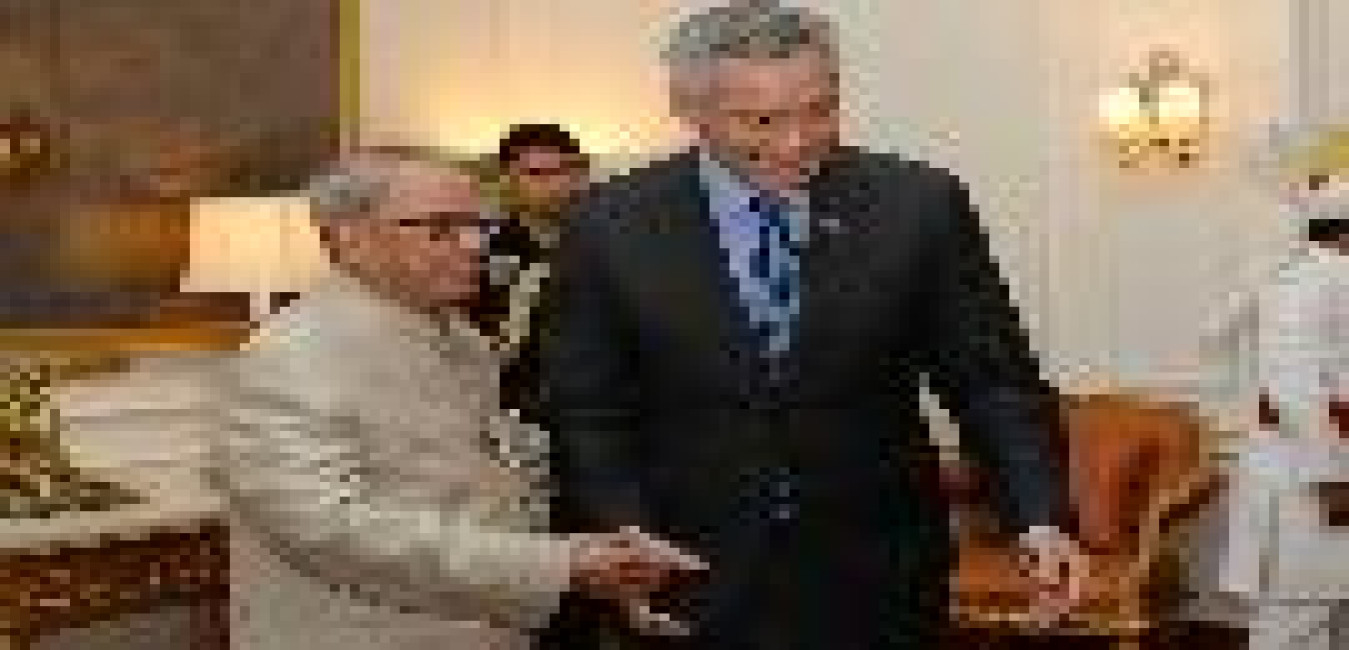 The Prime Minister of Republic of Singapore, H.E. Mr. Lee Hsien Loong calling on the President of India, Shri Pranab Mukherjee, at Rashtrapati Bhavan on October 05, 2016.