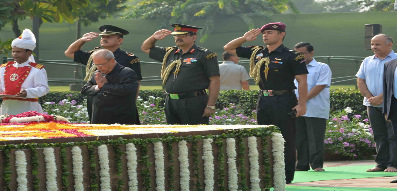 The President of India, Shri Pranab Mukherjee paying floral tributes at the Samadhi of Mahatma Gandhi on the occasion of his 147th Birth Anniversary, at Rajghat, in Delhi on October 02, 2016.