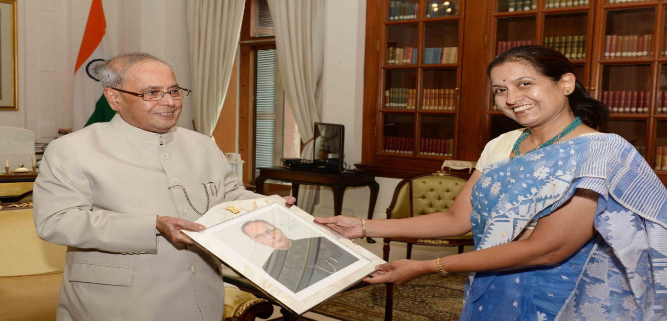 The President of India, Shri Pranab Mukherjee meeting with Ms. Jyotsana Goswami, at Rashtrapati Bhavan on October 02, 2016.