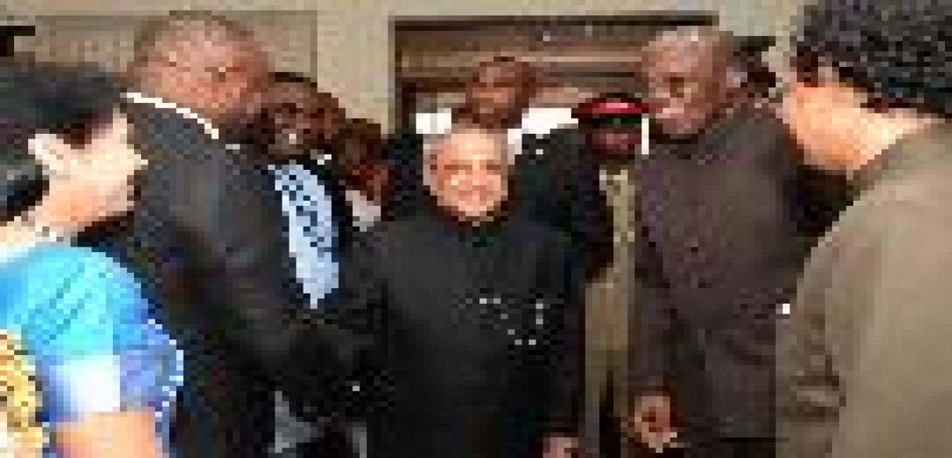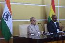 The President of India, Shri Pranab Mukherjee alongwith his official delegation Dr. Jitendra Singh, Shri Mansukh L Mandaviya and Shri S.S. Ahluwalia meeting the President of the Republic of Ghana, H.E. Mr. John Dramani Mahama, at Flagstaff House, in Accra, Ghana on June 12, 2016.