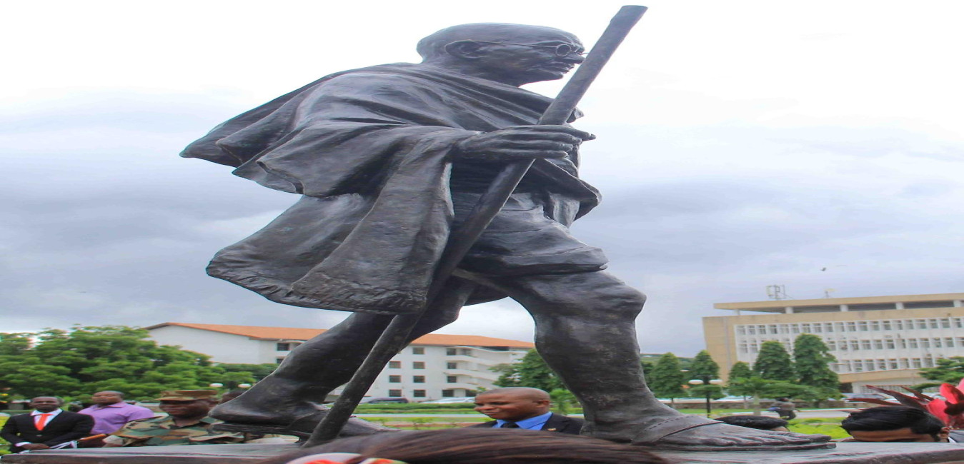 The President of India, Shri Pranab Mukherjee unveiling the statue of Mahatma Gandhi, during his visit at the University of Ghana, in Accra, Ghana on June 13, 2016.