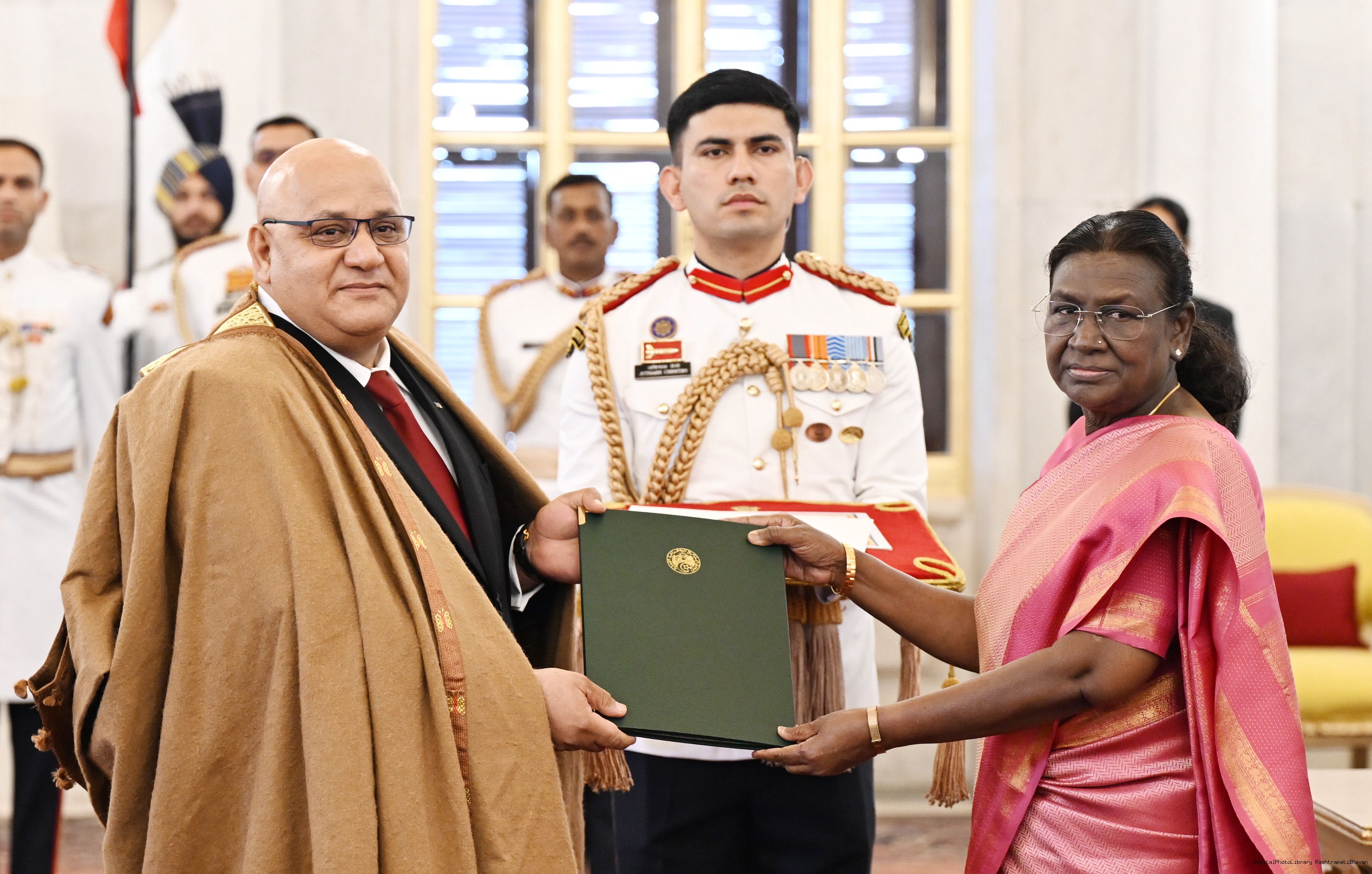 H.E. Mr Abdenor Khelifi, Ambassador of the People’s Democratic Republic of Algeria presenting credentials to the President of India, Smt Droupadi Murmu at a ceremony held at Rashtrapati Bhavan on May 30, 2025.