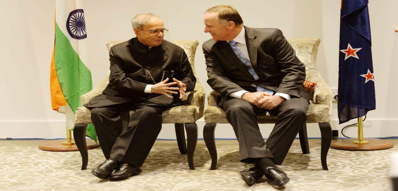 The President of India, Shri Pranab Mukherjee and the Prime Minister of New Zealand, Mr. John Key witnessing the Signing of agreement between India and New Zealand on direct flight service between India and New Zealand, at Auckland in New Zealand on May 01, 2016.