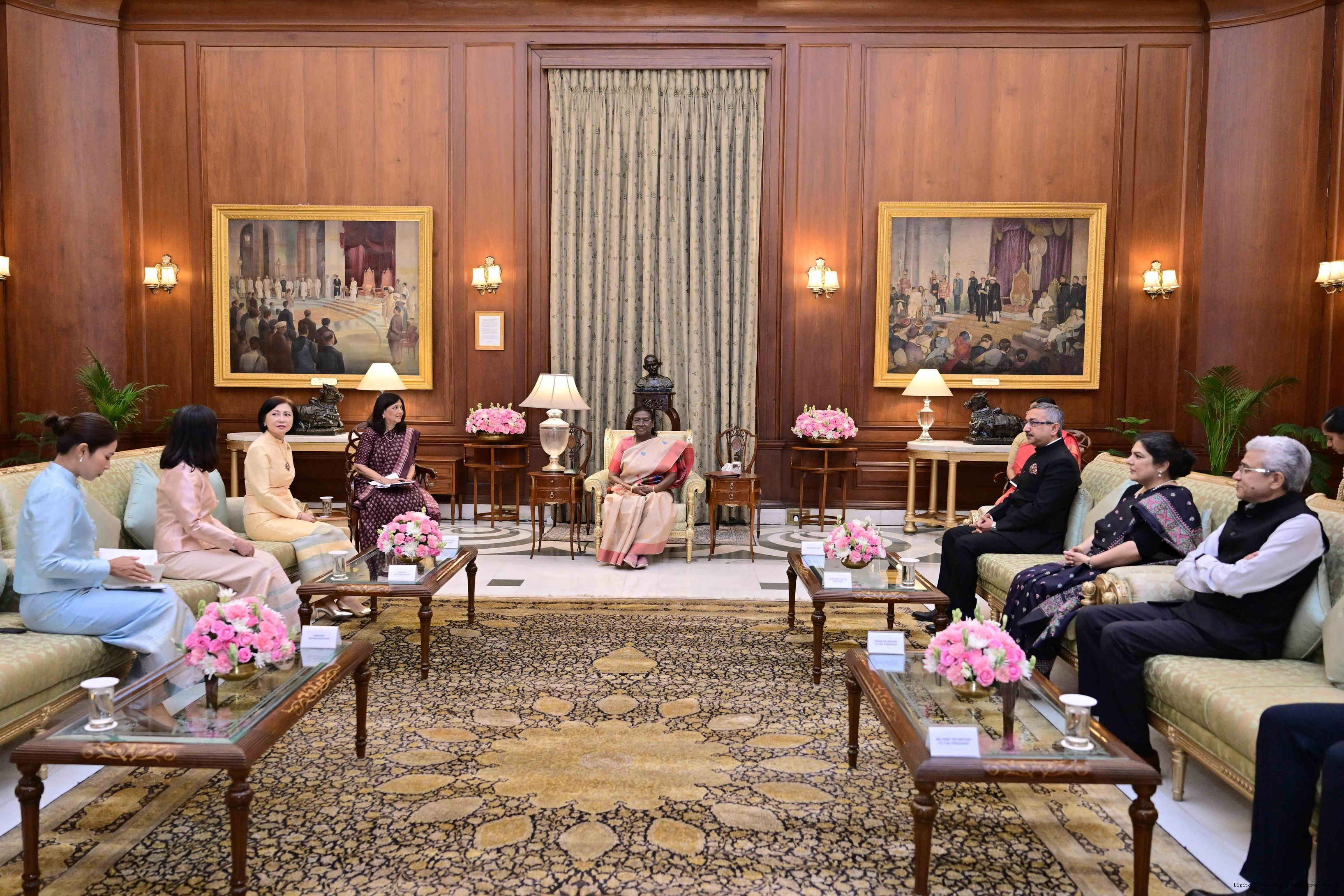 The Ambassador-designate of Thailand, H.E. Ms. Chavanart Thangsumphant presenting her credentials to the President of India, Smt Droupadi Murmu at Ashok Hall of Rashtrapati Bhavan in New Delhi on May 29, 2025.