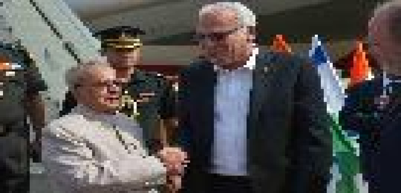 The President of India, Shri Pranab Mukherjee being received by the Minister for Agriculture of Israel, Mr. Uri Ariel, the Ambassador of India to Israel, Shri Jaideep Sarkar and other dignitaries, on his arrival, at Ben Gurion International airport, Tel Aviv, in Israel on October 13, 2015.