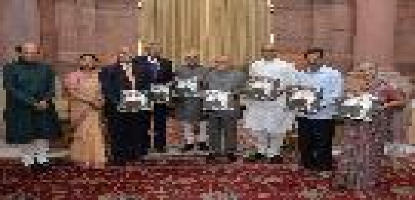 The President of India, Shri Pranab Mukherjee meeting with Ms. APJM Nazeema Marakayar, Niece and APJM Sheik Saleem, Grandson of late Dr. APJ Abdul Kalam, former President of India from Rameswaram, at Rashtrapati Bhavan, in New Delhi on October 08, 2015.