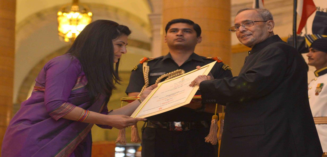 The President of India, Shri Pranab Mukherjee presenting the Nari Shakti Puraskar 2015, on the occasion of the International Women s Day, at Rashtrapati Bhavan on March 08, 2016.