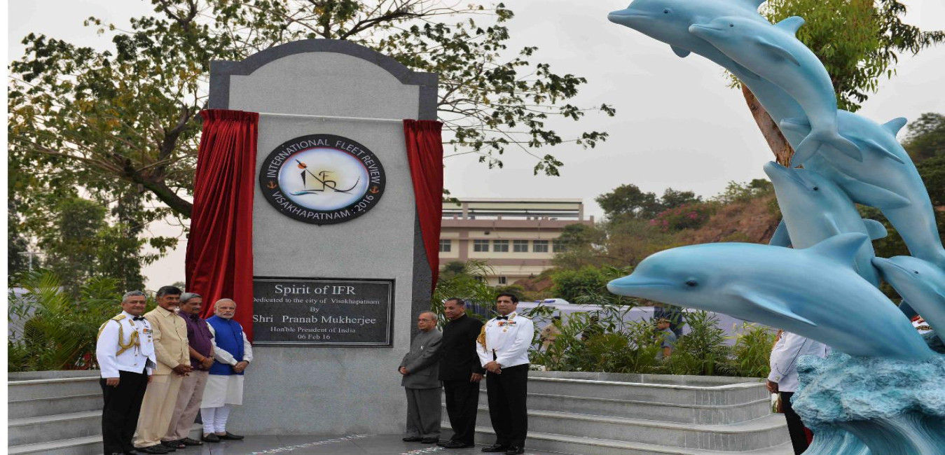 The President of India, Shri Pranab Mukherjee inaugurating the IFR Sculpture, at Visakhapatnam, in Andhra Pradesh on February 06, 2016.