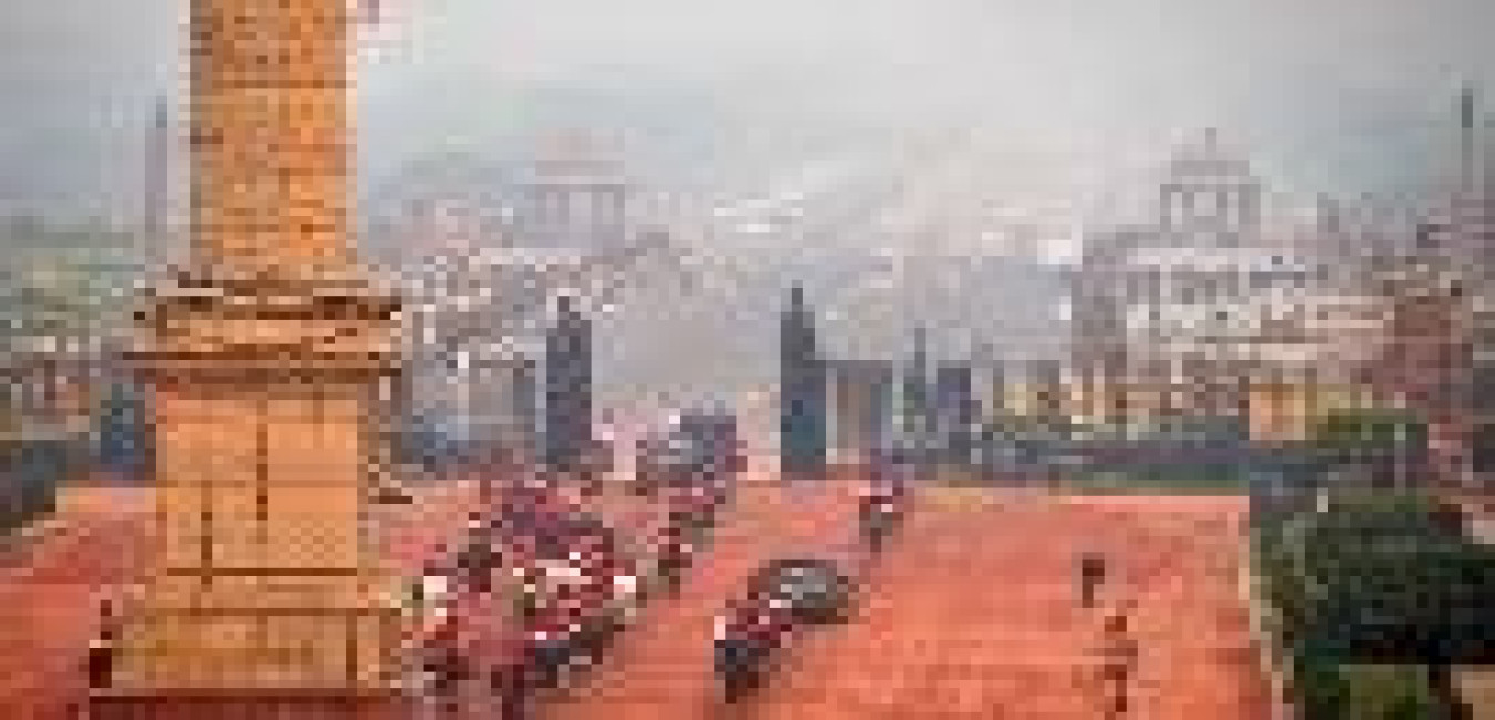 Glimpses of illuminated Rashtrapati Bhavan and Jaipur Column during Republic Day celebrations.