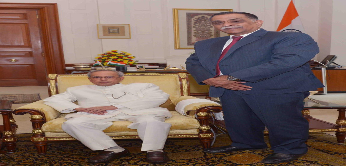 The President of India, Shri Pranab Mukherjee meeting with Shri T. Venkattram Reddy, Chairman, Deccan Chronicle Holdings Ltd. & Editor-in-Chief, Deccan Chronicle Group, at Rashtrapati Bhavan, in New Delhi on October 24, 2015.