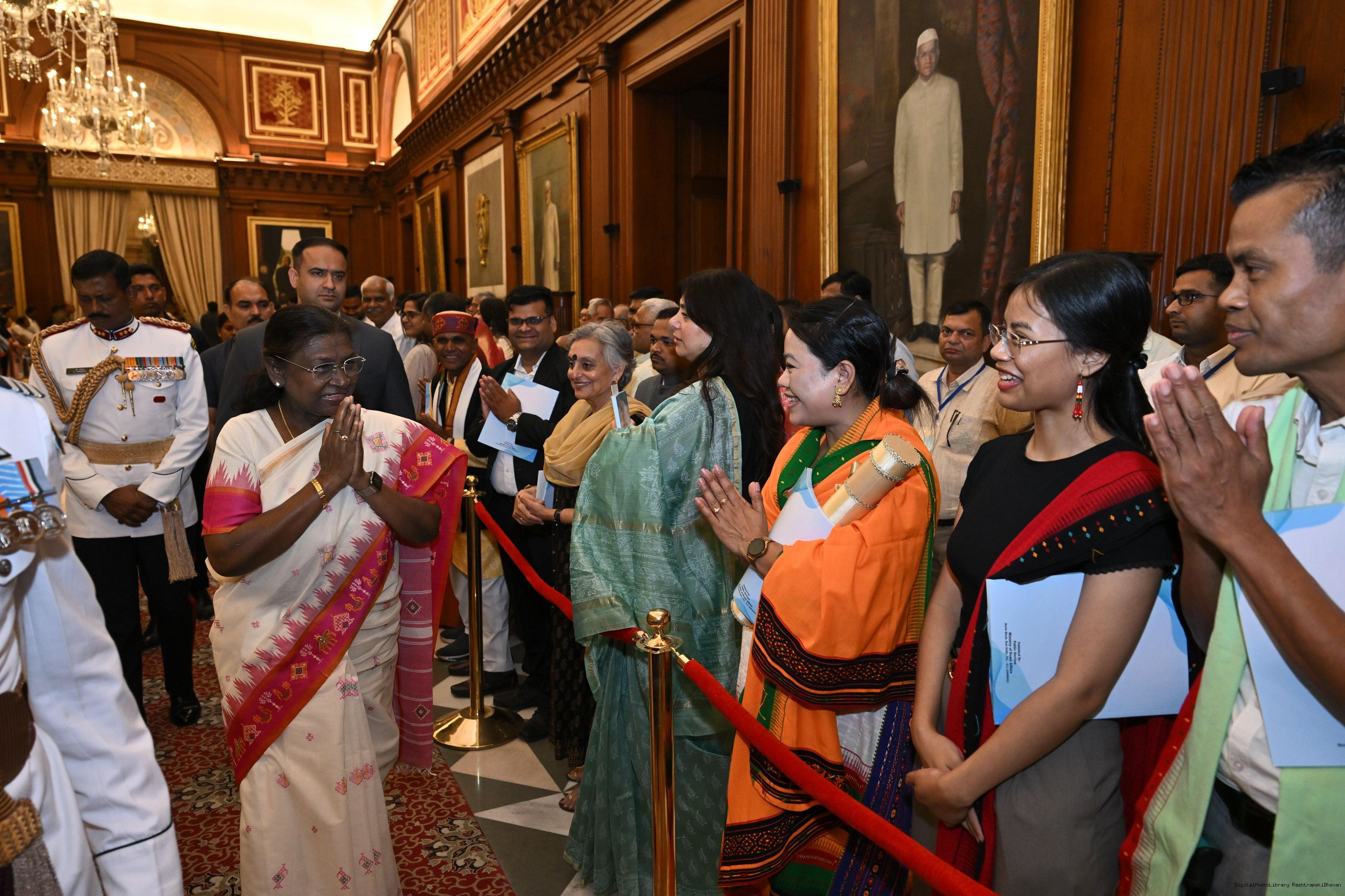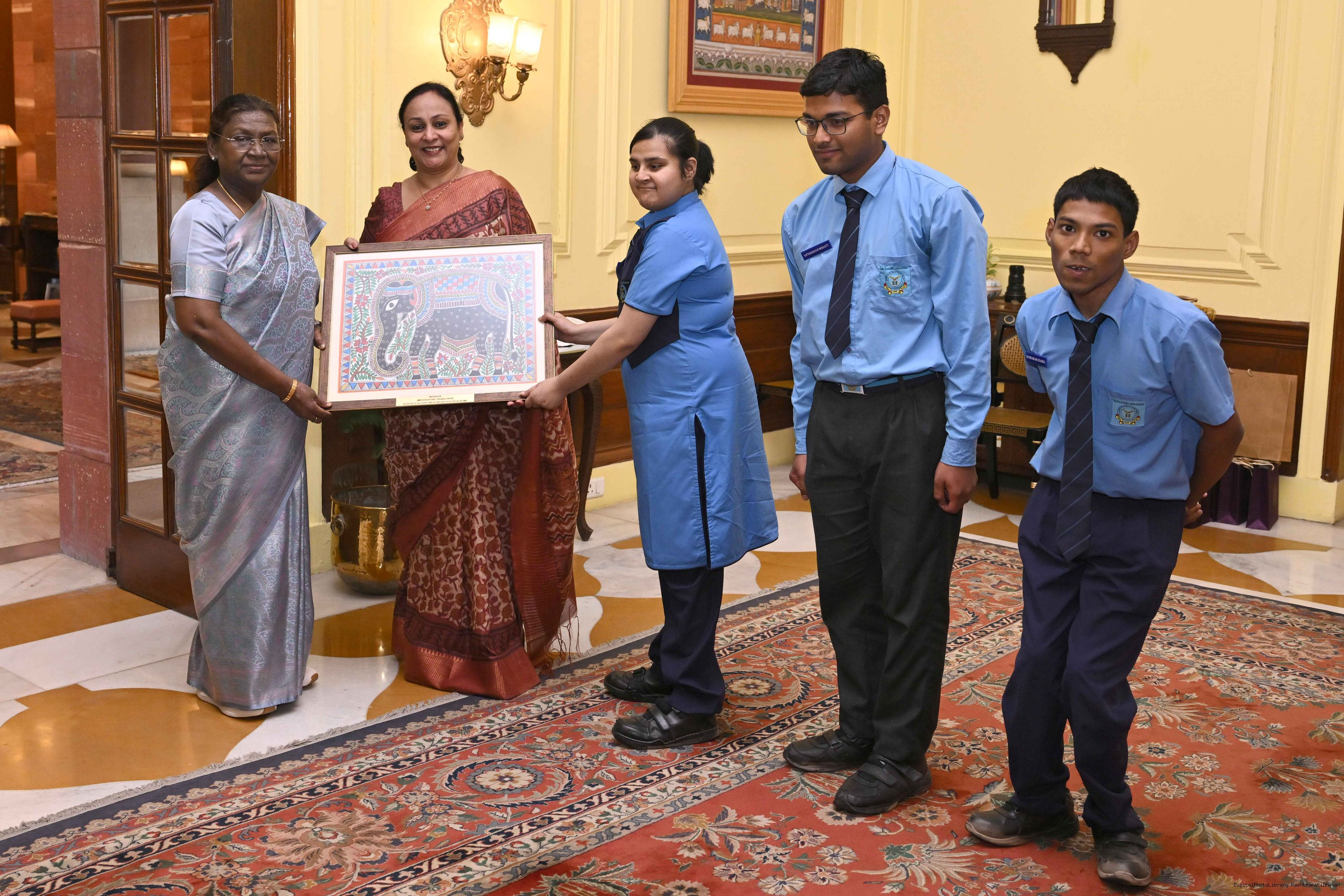 A group of specially-abled young adults from Umeed Vocational Training Centre, New Delhi called on the President of India, Smt. Droupadi Murmu at Rashtrapati Bhavan on April 30, 2025.