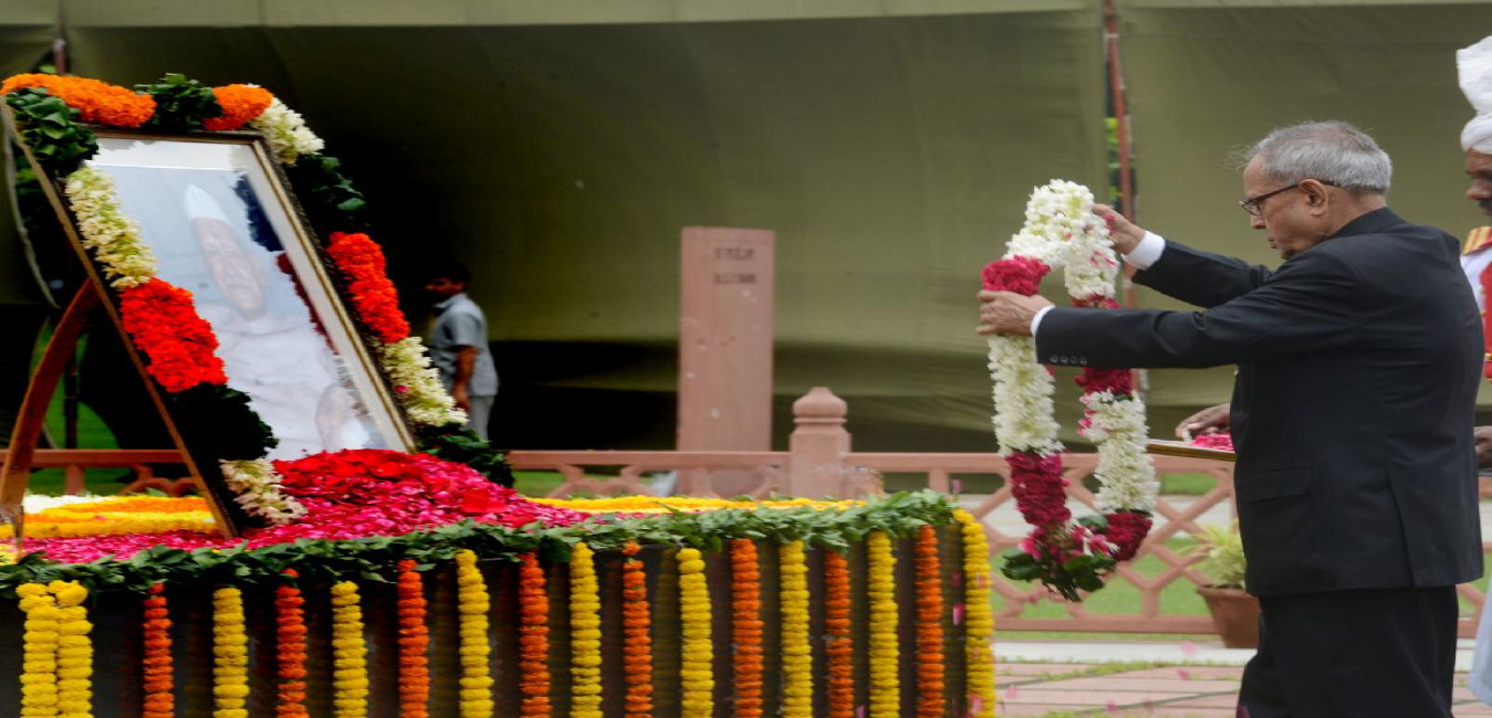 The President of India, Shri Pranab Mukherjee Paying Homage at the Samadhi of Late Shri Rajiv Gandhi on the Occasion of his 69th Birth Anniversary at Veer Bhumi in New Delhi on Aug 20, 2013