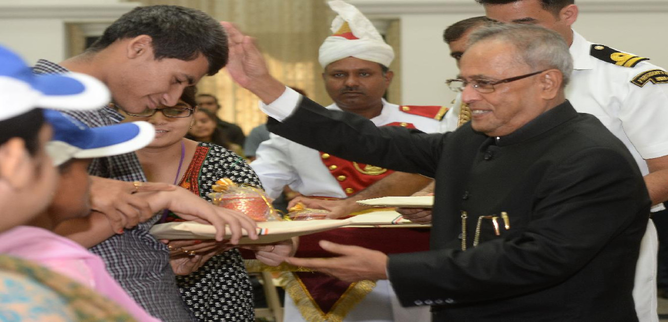 The President of India, Shri Pranab Mukherjee Interacting with the Physically and Mentally abled Children of President's Estate on the Occasion of India's 67th Independence Day at Rashtrpati Bhavan Auditorium on Aug 15, 2013