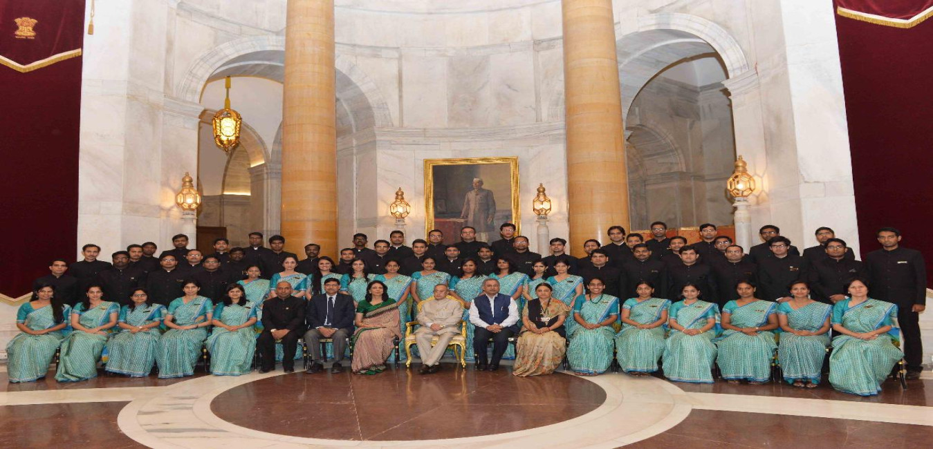 The President of India, Shri Pranab Mukherjee interacting with the Officer Trainees of 68th Batch of Indian Revenue Service from National Academy of Direct Taxes (NADT), Nagpur, at Rashtrapati Bhavan, in New Delhi on March 13, 2015.