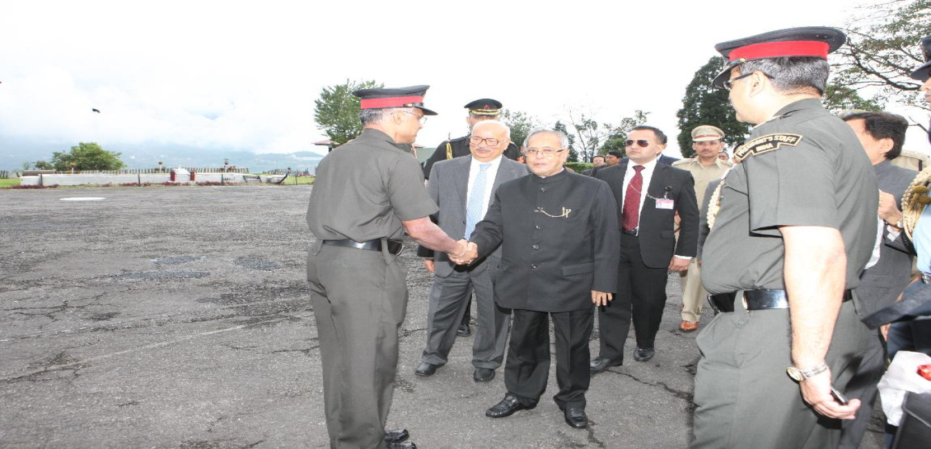 The President of India, Shri Pranab Mukherjee Inspecting Guard of Honor & Reception at Gangtok Helipad on April 16, 2013