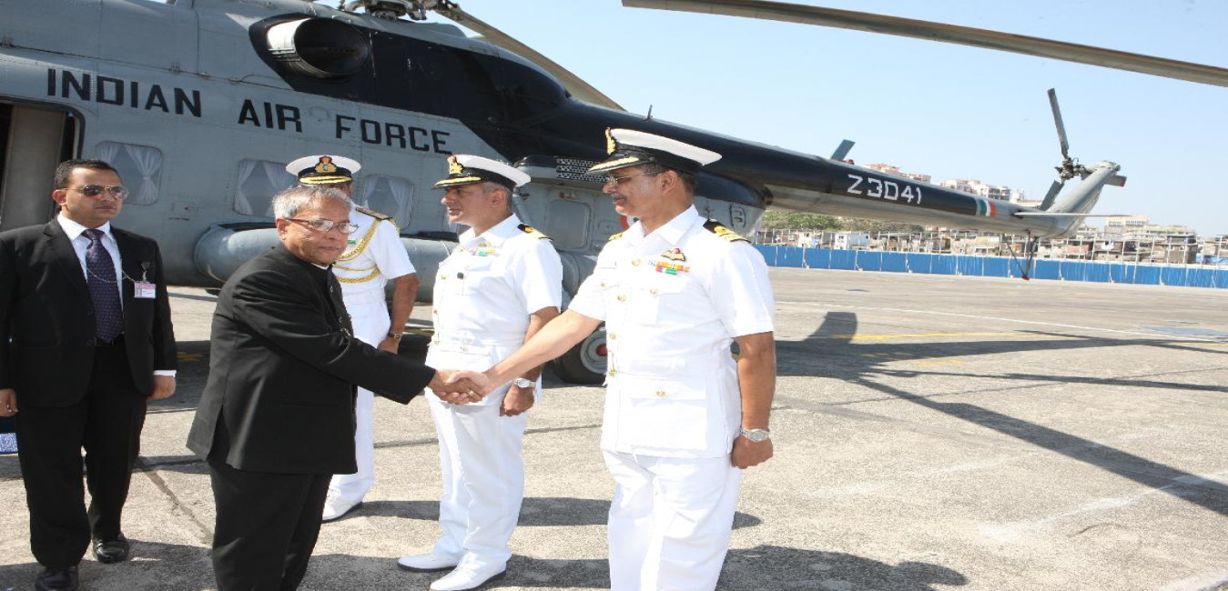 The President of India, Shri Pranab Mukherjee Arriving at INS Shikra on April 06, 2013