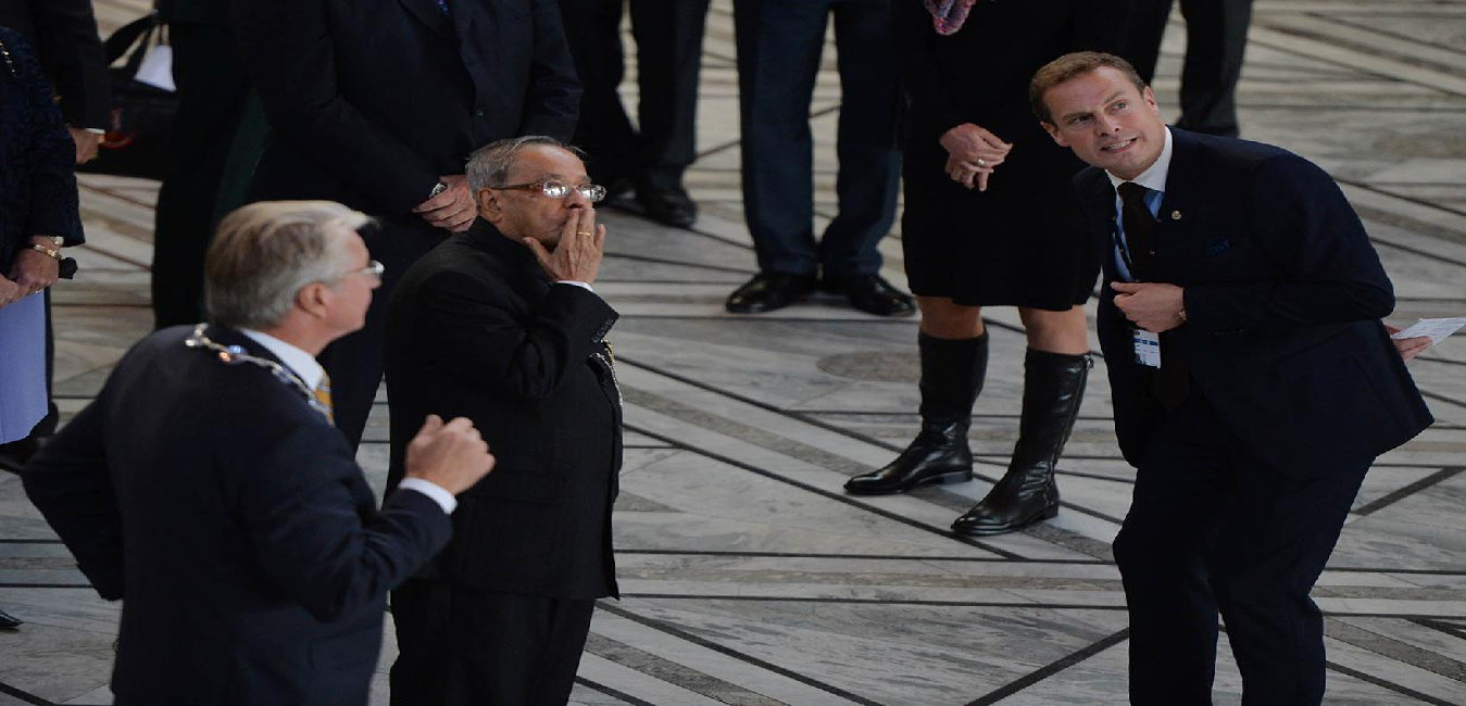 The President of India, Shri Pranab Mukherjee during visit to Oslo City Hall at Oslo in Norway on Oct 13, 2014