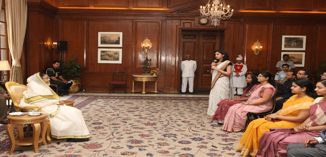 The President of India, Smt Pratibha Devisingh Patil interacting with Smt Rohini Dongre and others at Rashtrapati Bhavan in New Delhi on June 28, 2012