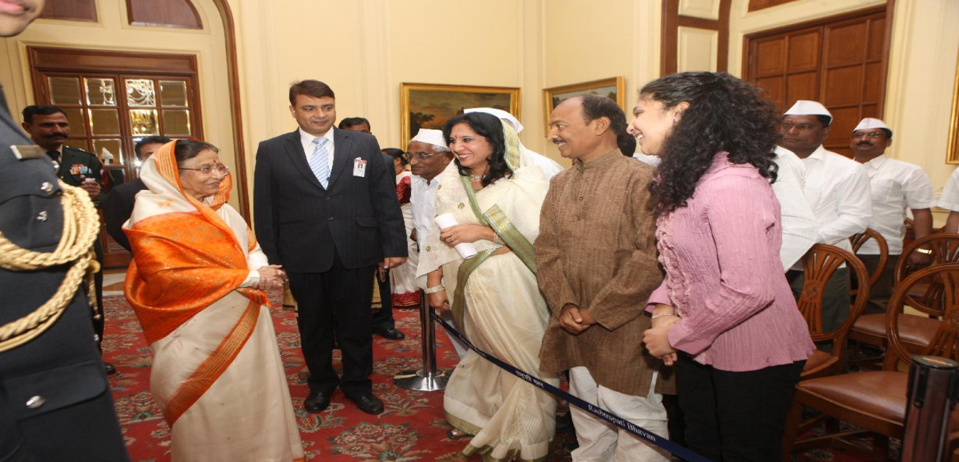 The President of India, Smt Pratibha Devisingh Patil interacting with Smt Meena Satish Kole and others at Rashtrapati Bhavan in New Delhi on Feb 29, 2012