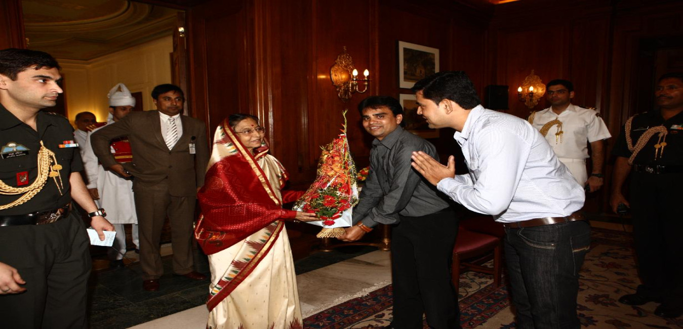 The President of India, Smt Pratibha Devisingh Patil interacting with Shri Manoj Jaiswal and others at Rashtrapati Bhavan in New Delhi on Oct 12, 2011