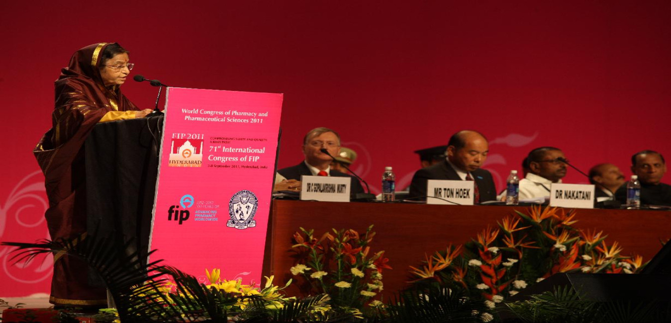 The President of India, Smt Pratibha Devisingh Patil during the Inauguration of the 71st FIP World Congress of Pharmacy and Pharmaceutical Sciences after the release of the Souvenir at Hyderabad in Andhra Pradesh on Sep 04, 2011