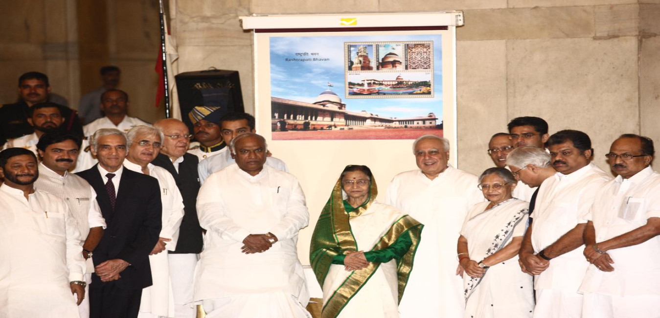 The President of India, Smt Pratibha Devisingh Patil releasing the Commemorative Postage Stamp on 'Rashtrapati Bhavan' at Rashtrapati Bhavan in New Delhi on Aug 05, 2011