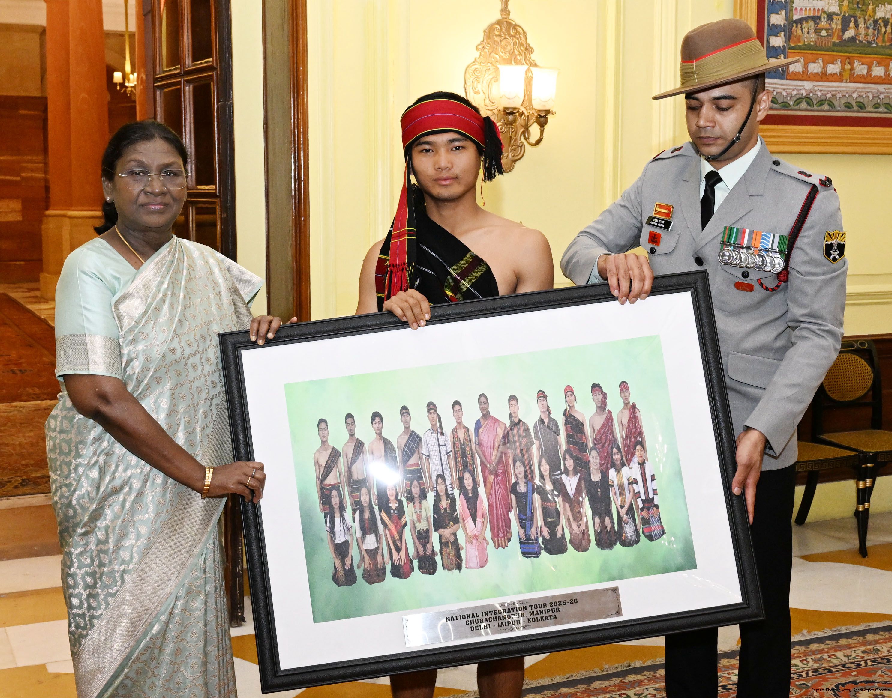 A group of students from Churachandpur, Manipur, called on the President of India, Smt. Droupadi Murmu at Rashtrapati Bhavan on November 19, 2025. They visited Rashtrapati Bhavan as part of the National Integration Tour (NIT).