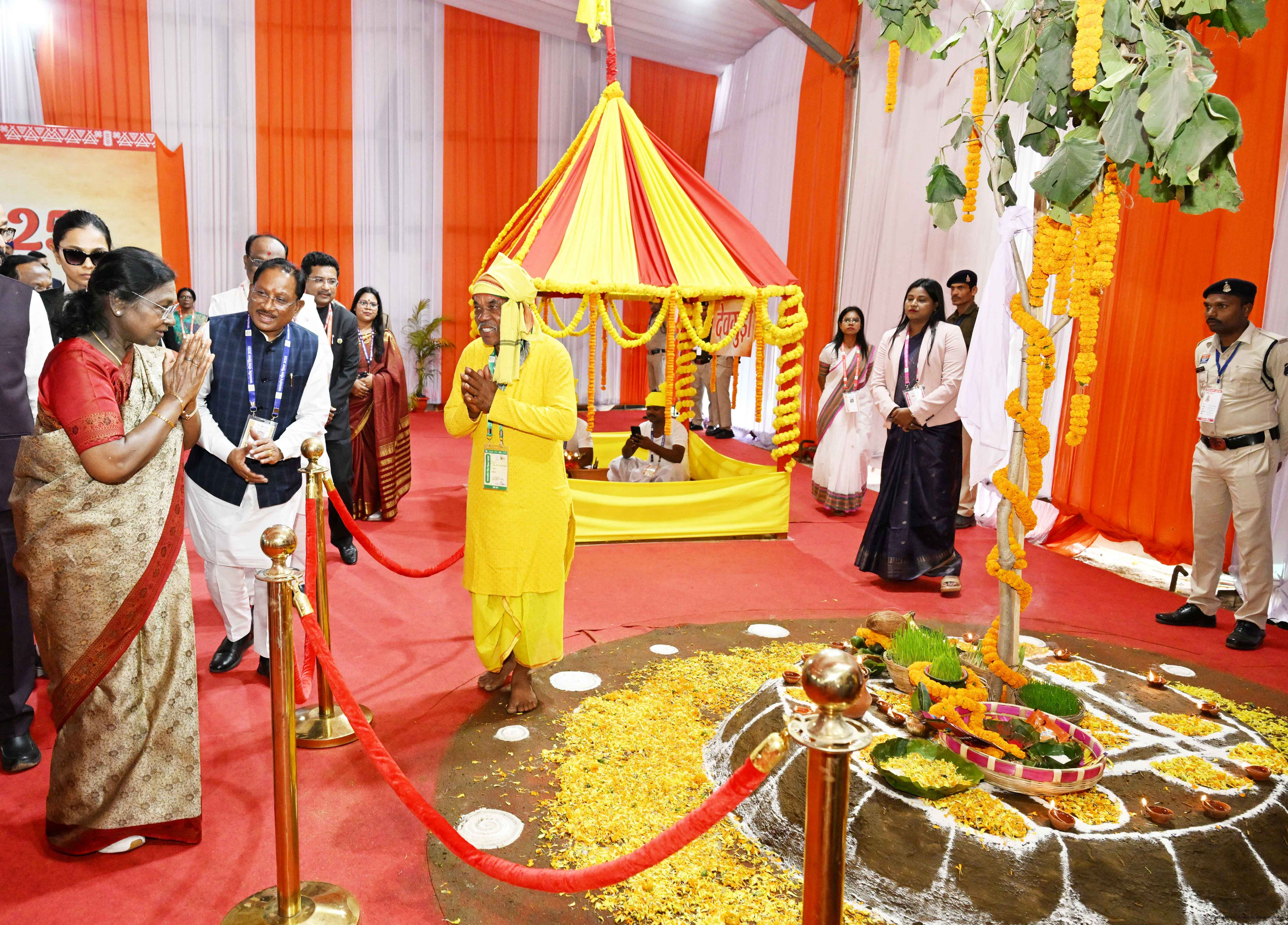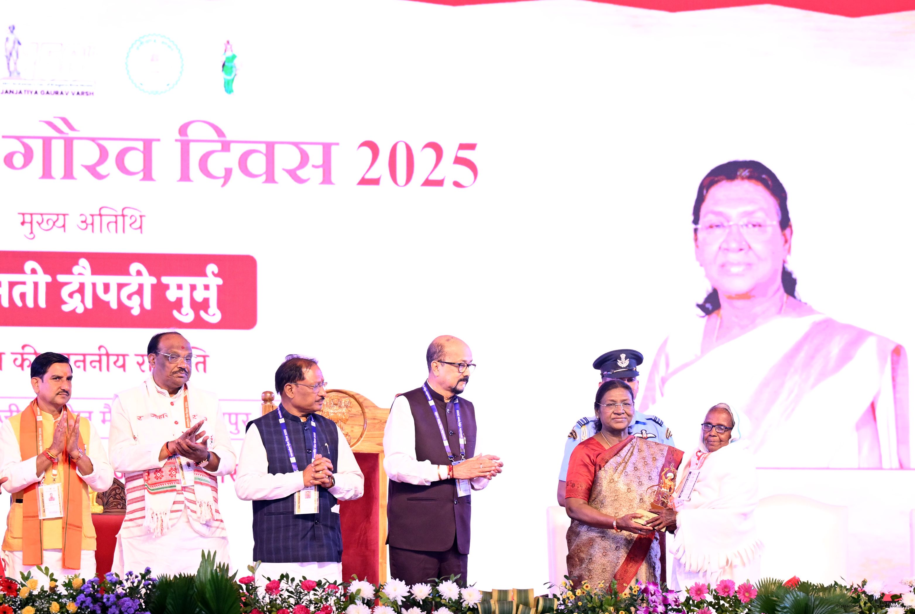 The President of India, Smt Droupadi Murmu, graced the Janjatiya Gaurav Diwas celebration, organised by the Government of Chhattisgarh at Ambikapur, Surguja, Chhattisgarh on November 20, 2025