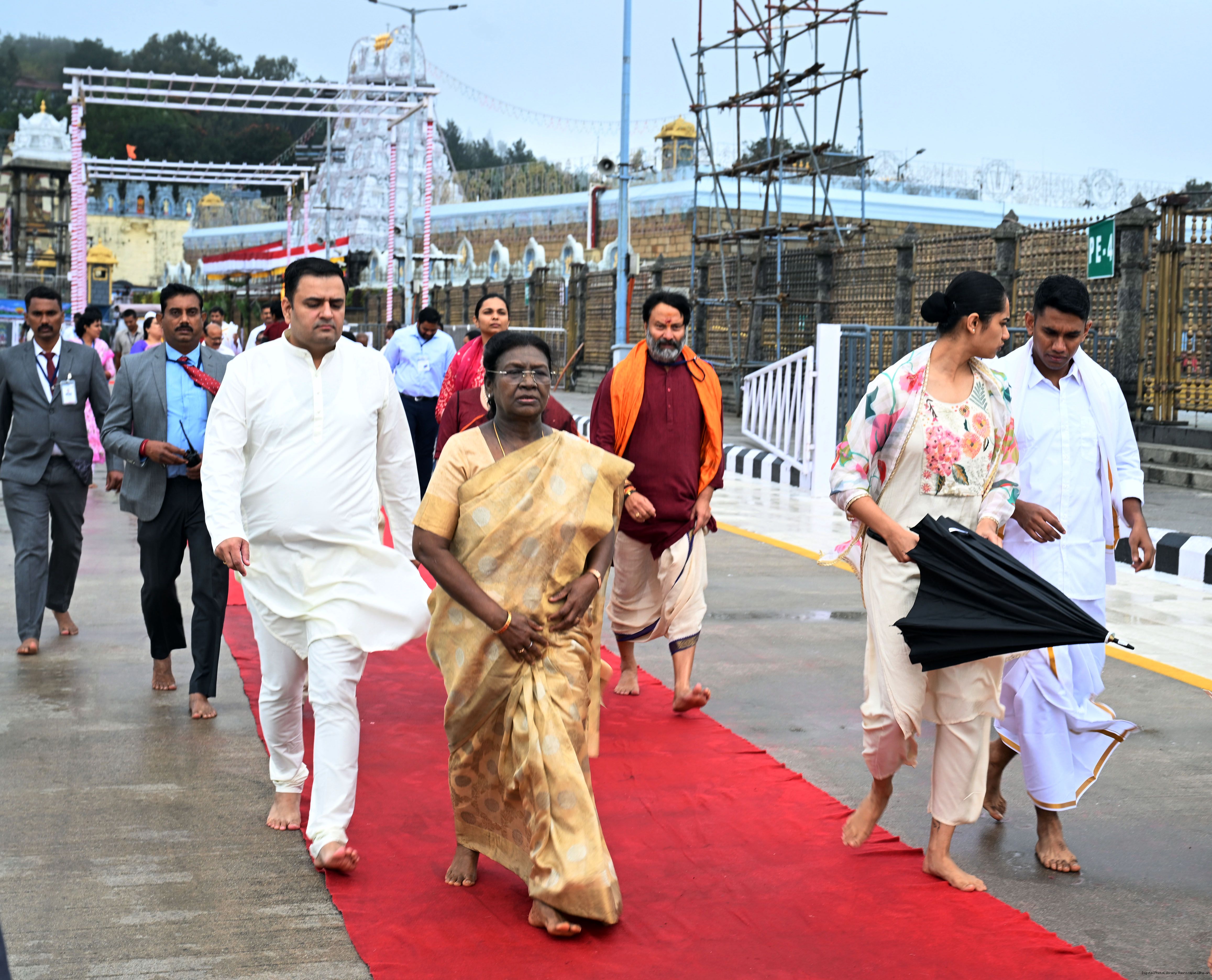 The President of India, Smt. Droupadi Murmu performed Darshan and Puja at Sri Venkateswara Swamy Temple at Tirumala, Andhra Pradesh on November 20, 2025.